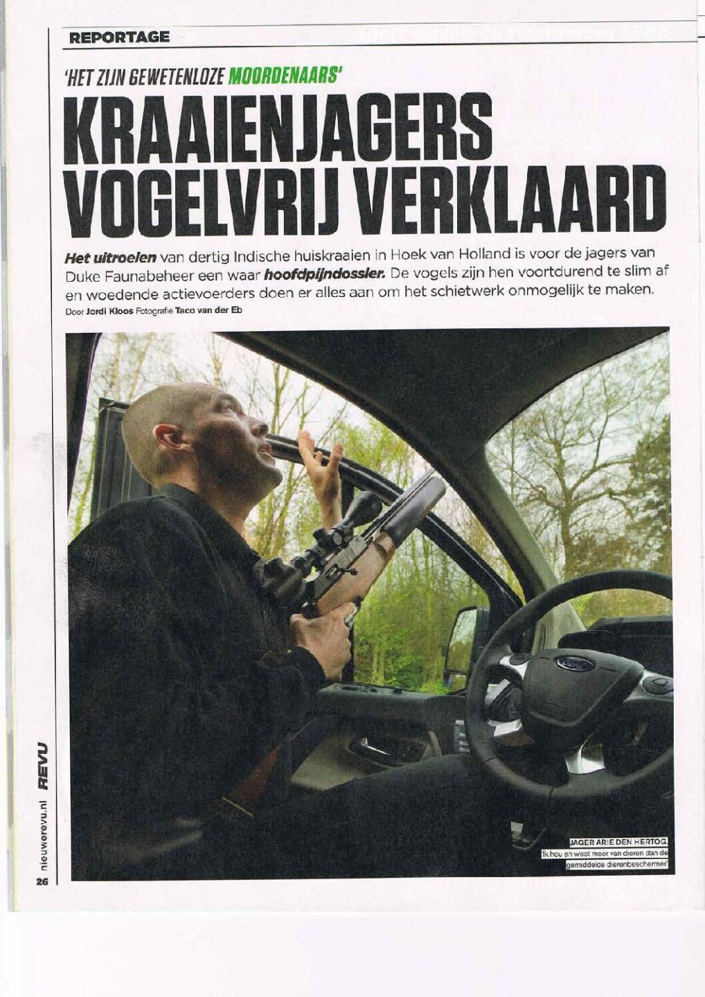 ROTTERDAM – Schietnetten, vangkooien. Alles gooit Arie den Hertog in de strijd om de 20 à 30 Indische huiskraaien in Hoek van Holland te vangen, maar de vogels zijn de man vaak te slim af. Nu schiet hij ze, tot groot verdriet van Stichting Faunabeheer en enkele inwoners, één voor één met een persluchtbuks af.